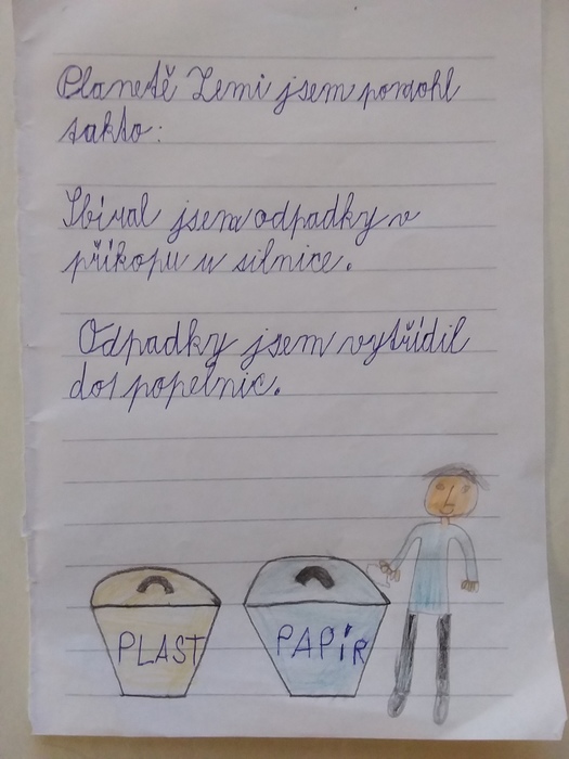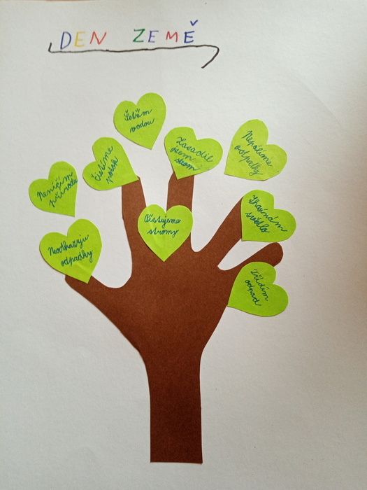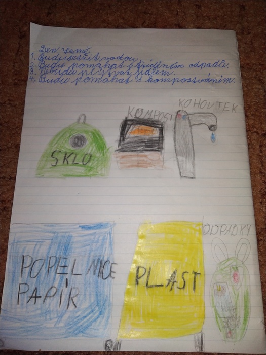22.4. 2021 slavila opět naše planeta Země svátek. Druháčci popřemýšleli, jaký dárek své Zemi věnují. Co pro ni dělají? Co pro ni změní? Jelikož byli doma na distanční výuce, nepracovali společně, ale každý sám "zabalil" svůj dárek. Kuba uklidil část Lanšperka od nepořádku, Adámek zasadil nový strom a Ondra se postaral o včeličky. Emička uklízí ekologickými prostředky, všichni už umí třídit odpadky. Dokáží šetřit vodou, elektřinou, neplýtvají jídlem ani věcmi. Chodí do přírody poznávat ji a ne znečišťovat nebo jinak ničit.